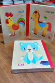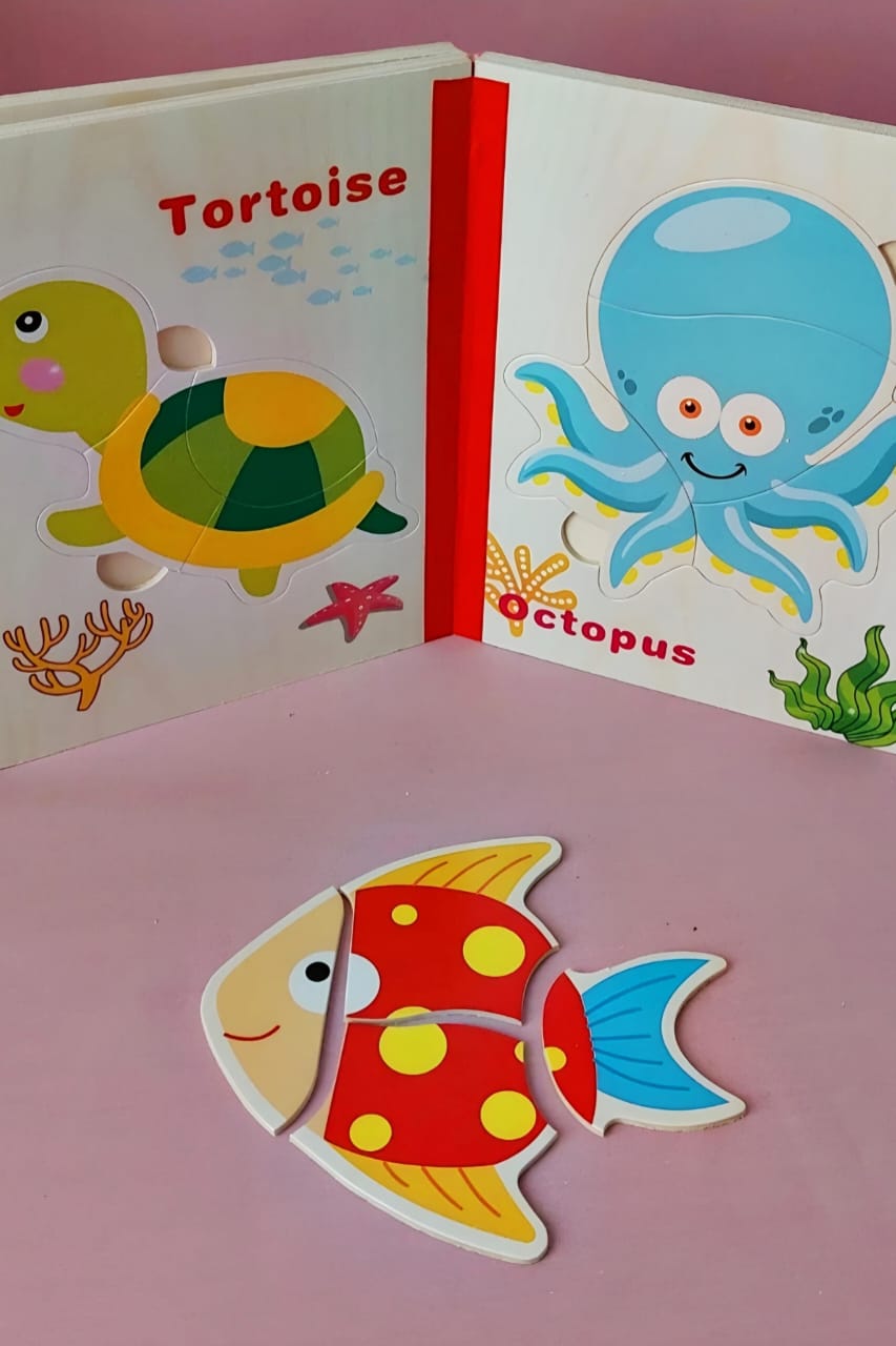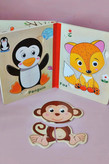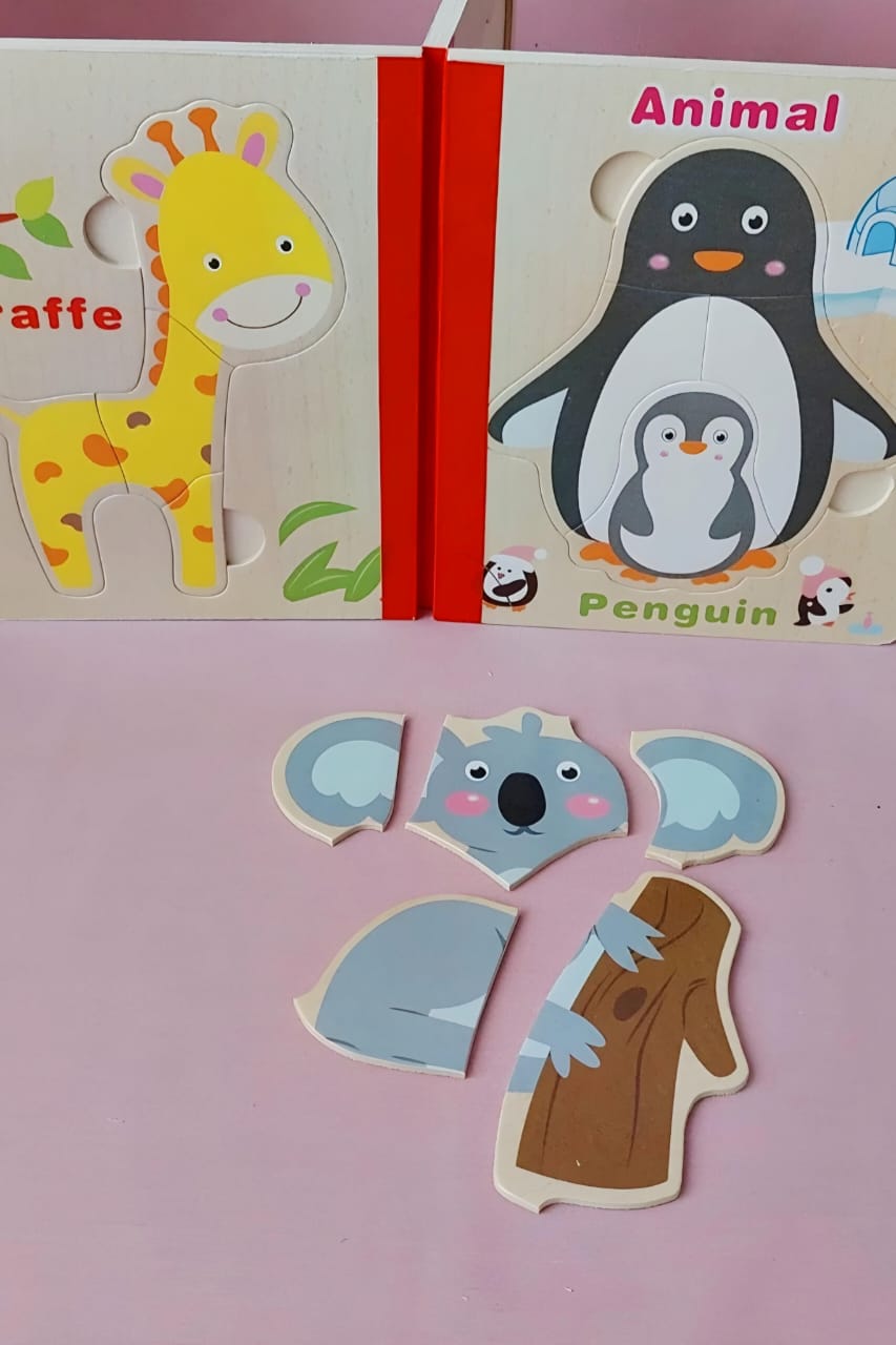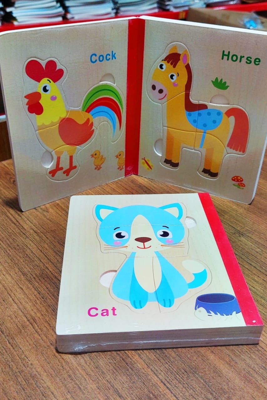 پازل کتابی چوبی مناسب بچه های بالای ۲ سال.هرکتاب شش عدد پازل از جنس چوب دارد هم زمینه هم تکه های پازل از جنس چوب میباشد